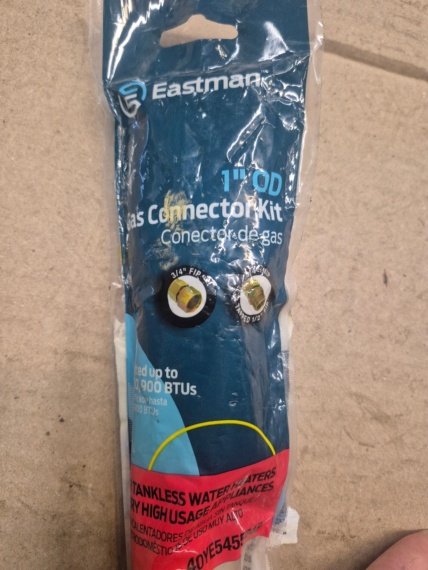 This Eastman 1-inch gas connector is designed for high-BTU applications, rated up to 290,000 BTU capacity. Perfect for tankless water heaters and other high-demand gas appliances that require reliable, safe gas connections.